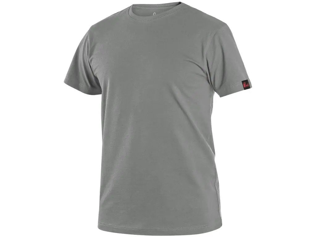 Pánské tričko s krátkým rukávem, kulatý průkrčník, zpevňující krční a ramenní páska, boční švy. Finální silikonová úprava materiálu, která zajišťuje vyšší měkkost a pružnost, rozměrovou stálost a omezuje žmolkovatění. Použití v práci i pro volný čas.